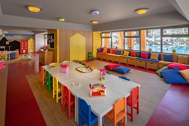 Copii au acces la un bufet special pentru ei, piscina cu topogan, loc de joaca, miniclub, bona (contra cost).