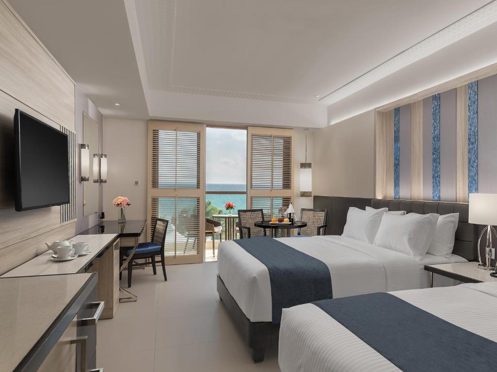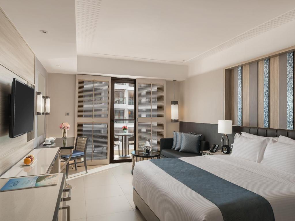 Camerele de la Henann Palm Beach Resort au aer condiționat, seif, TV prin cablu și frigider. De asemenea, acestea oferă baie privată, care include uscător de păr și articole de toaletă gratuite. In plus, oaspeții beneficiază de WiFi gratuit, iar unele camere au balcon cu vedere la mare sau la piscină.
